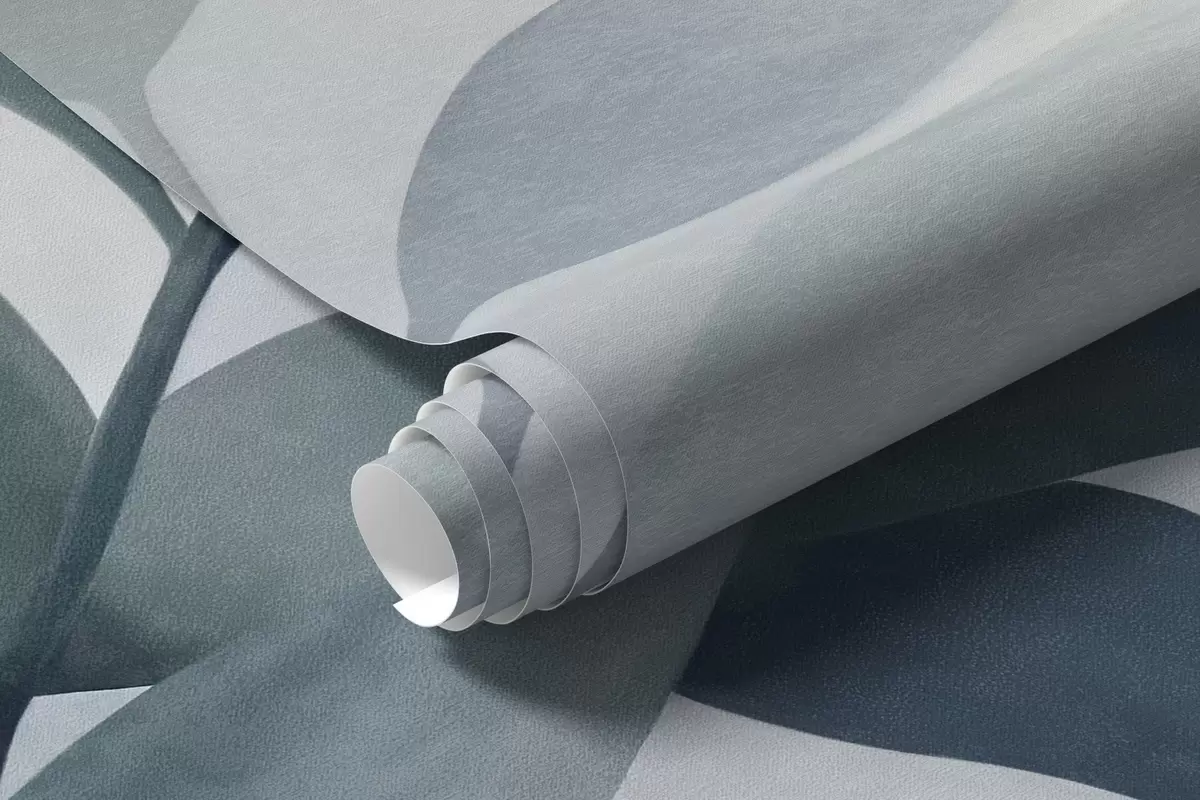 Тапете за зид Нежне гране са пригушеним плавим листовима, стил акварела, текстурирана уметност бр. w09750v1