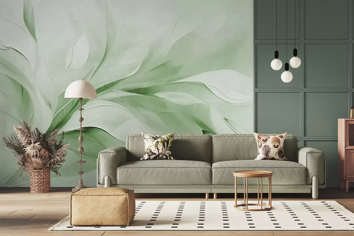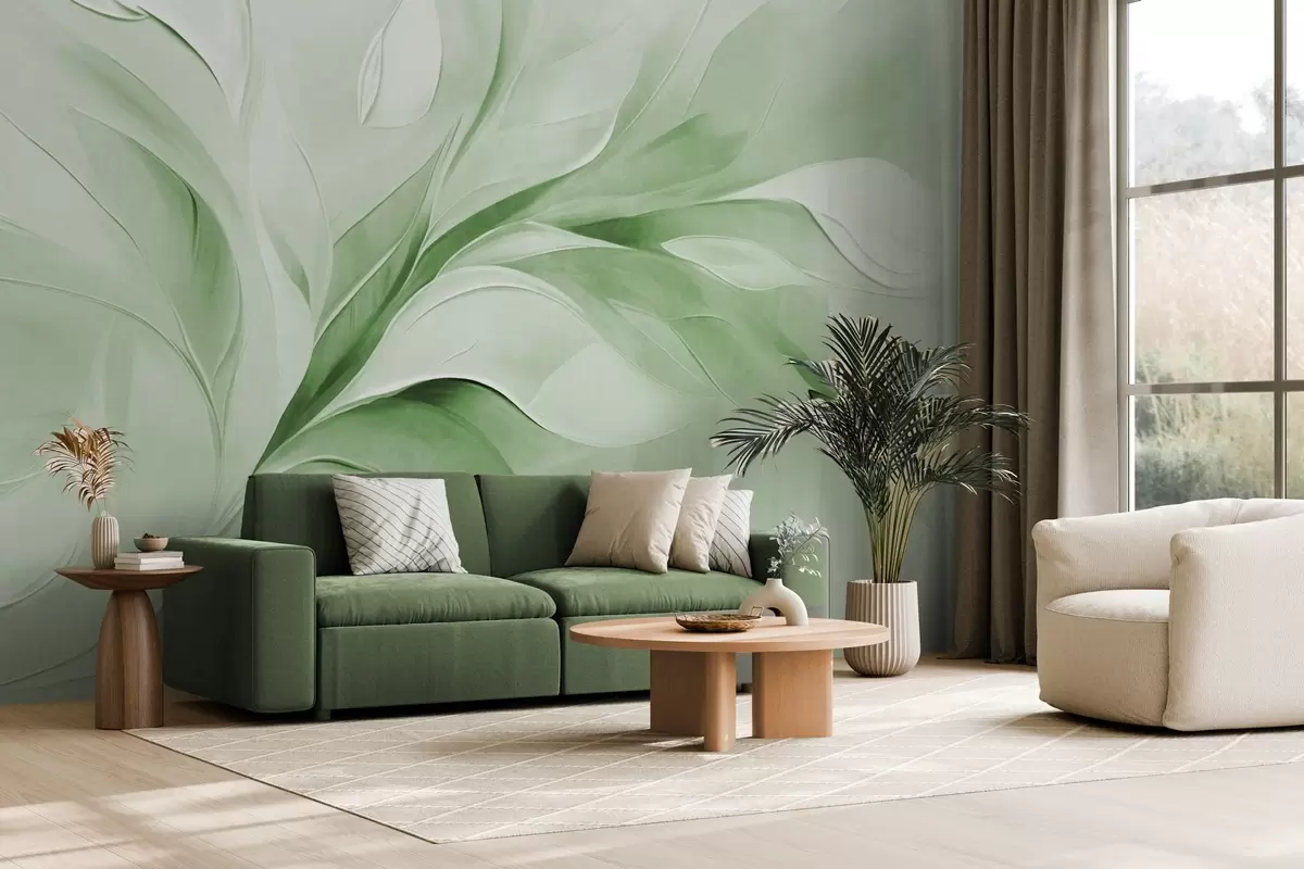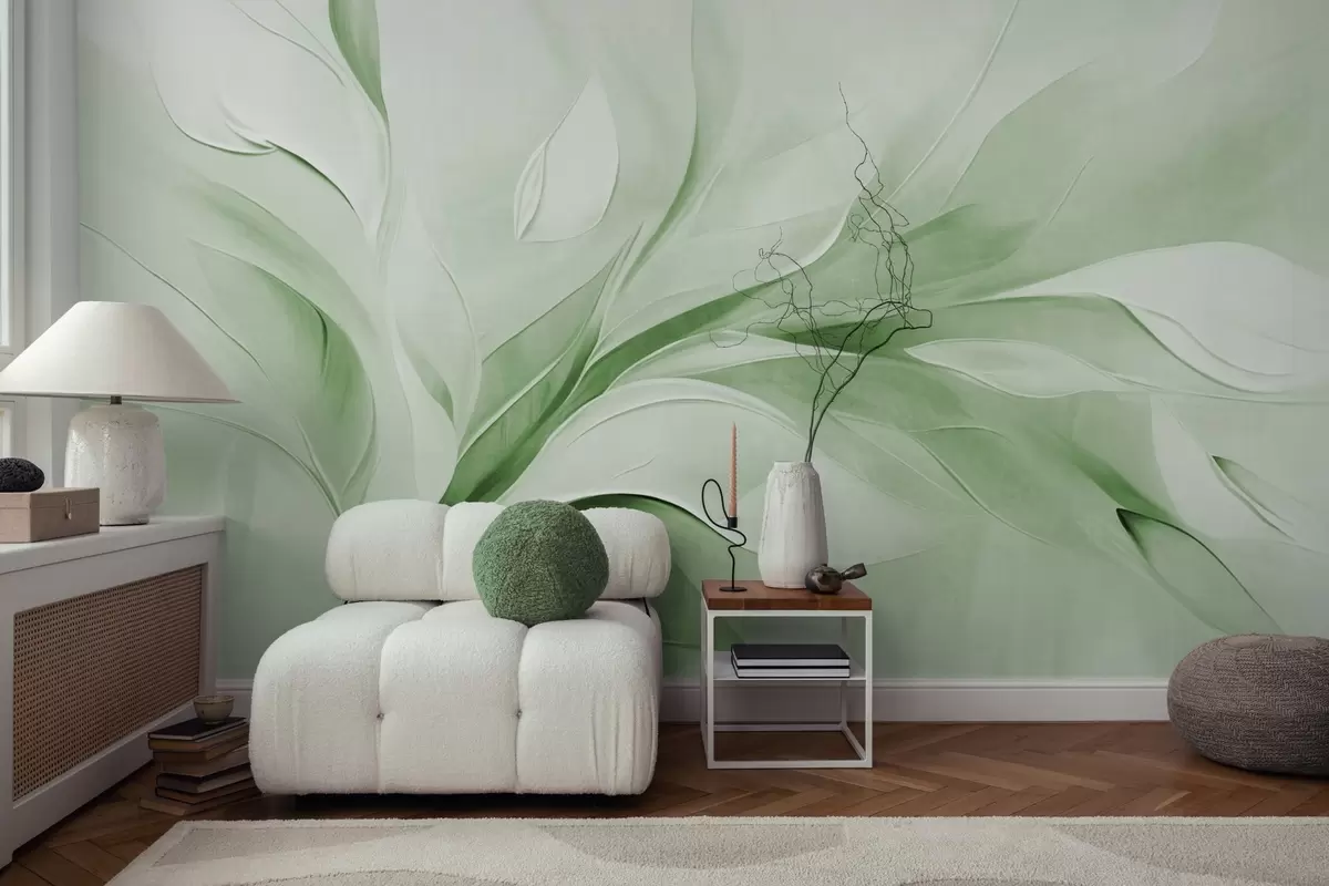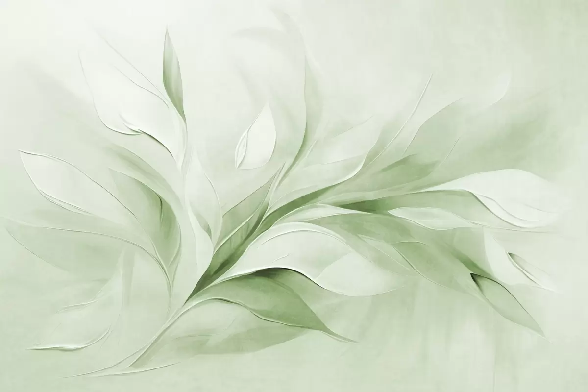 Тапете за зид Апстрактни текстурирани стил сликања зелених и белих текућих листова бр. w09765v2