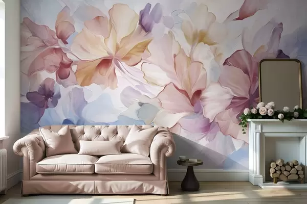 Тапете за зид Апстрактни фантастични цветови у нијансама ружичасте, брескве и лаванде у стилу сликања, текстурирана уметност бр. w09767