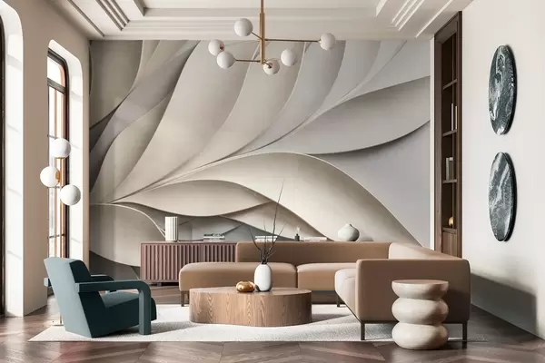 Тапете за зид Апстрактно лишће у беж и сивој боји, текстурирана модерна уметност бр. w09769