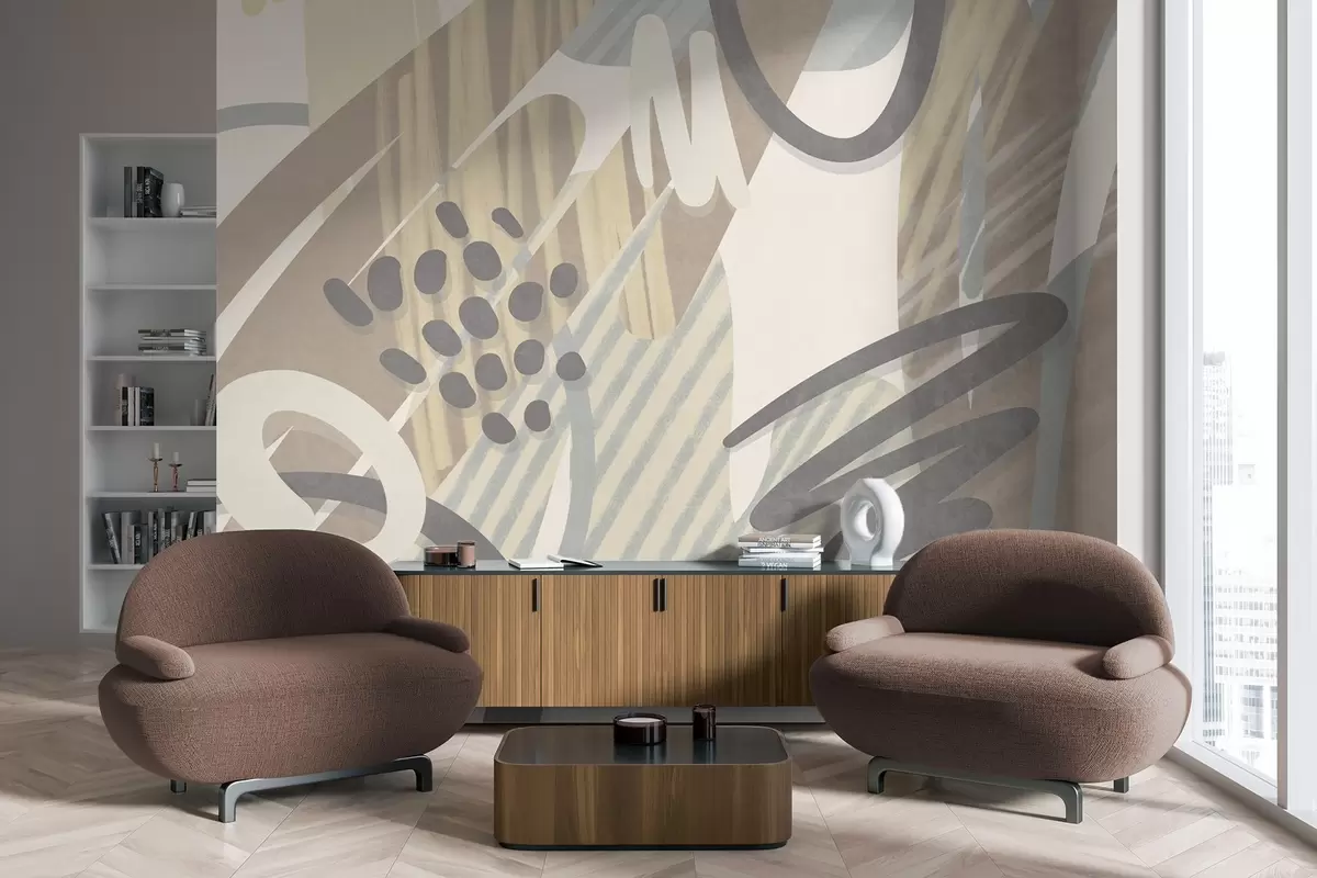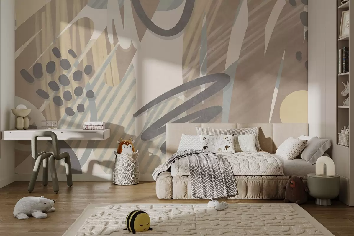 Тапете за зид Апстрактни текстурирани отисак са органским облицима, шарама и тачкама у пригушеним пастелним бојама бр. w09774