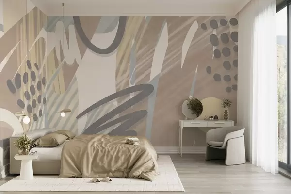 Тапете за зид Апстрактни текстурирани отисак са органским облицима, шарама и тачкама у пригушеним пастелним бојама бр. w09774