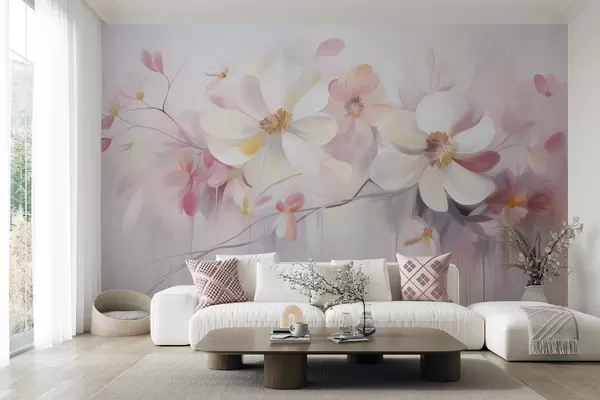 Тапете за зид Бело и ружичасто цвеће са нежним латицама текстурираном уметношћу, апстрактна, мека позадина бр. w09811