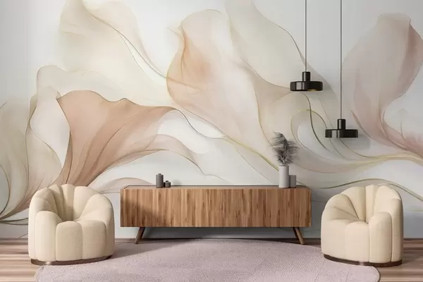 Тапете за зид Апстрактна текућа текстура у нијансама брескве и крема са нежним линијама бр. w09815