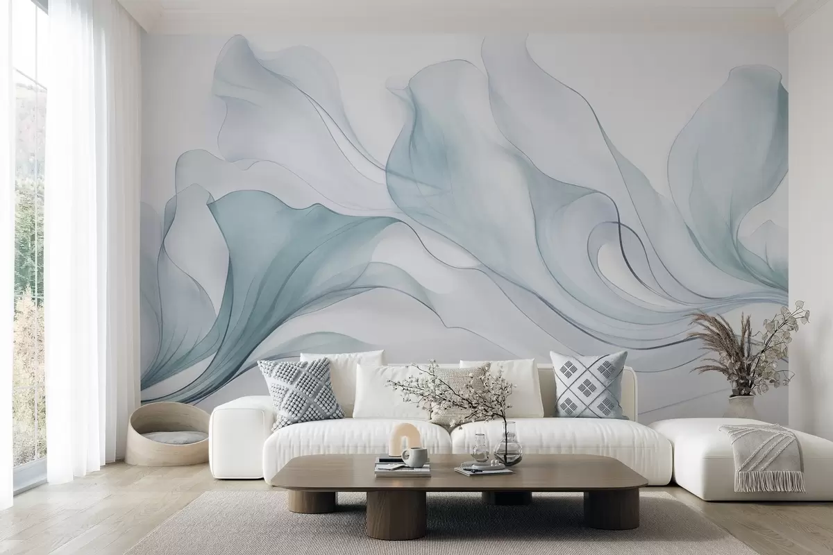 Тапете за зид Апстрактна текућа текстура у нијансама плаве са нежним линијама бр. w09815v1