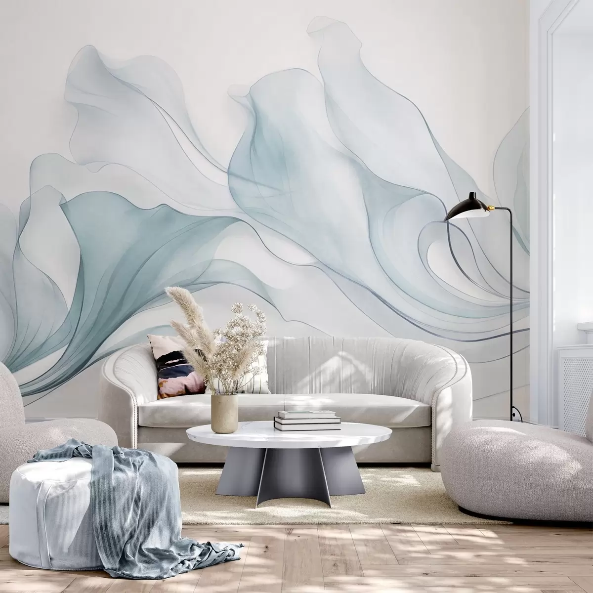 Тапете за зид Апстрактна текућа текстура у нијансама плаве са нежним линијама бр. w09815v1