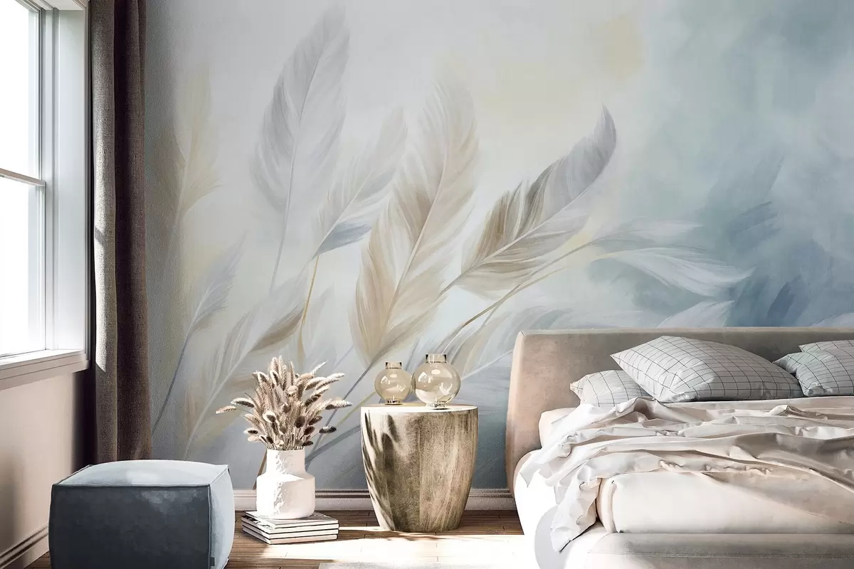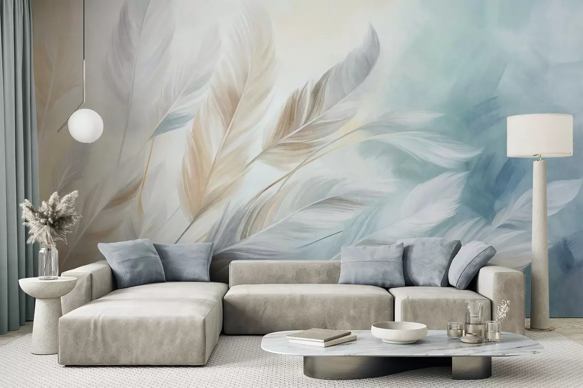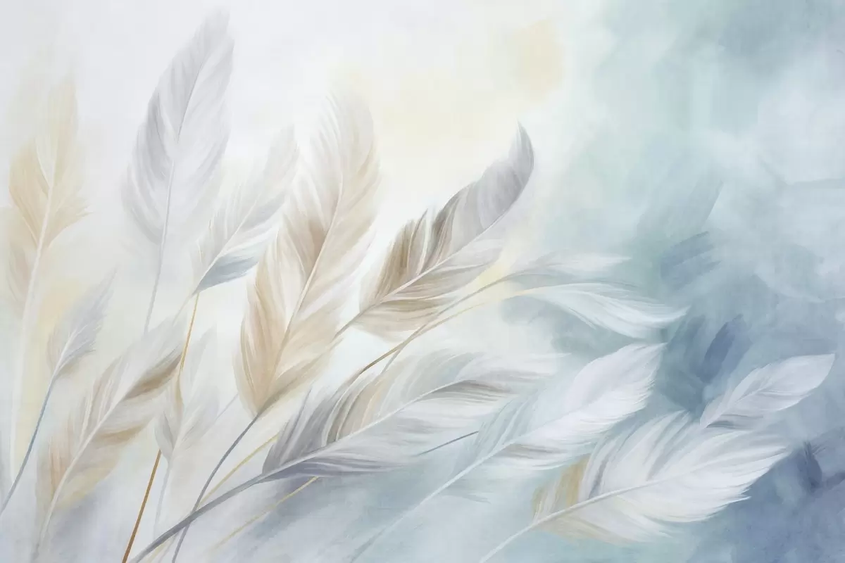 Тапете за зид Текстурирано пастелно перје са меким, танким ивицама, на позадини у акварел стилу бр. w09833
