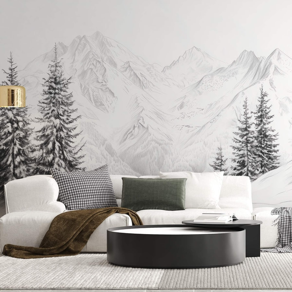 wall murals Беж планине са хеликоптером, авионом и животињама w00414