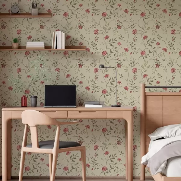 Tapeta Цвеће и црвени пупољци на светлој позадини бр. a00114