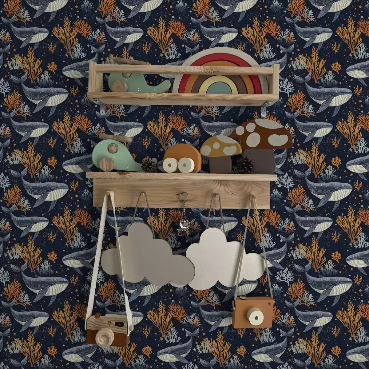 Tapeta Морски китови и корали на тамној позадини бр. a00116