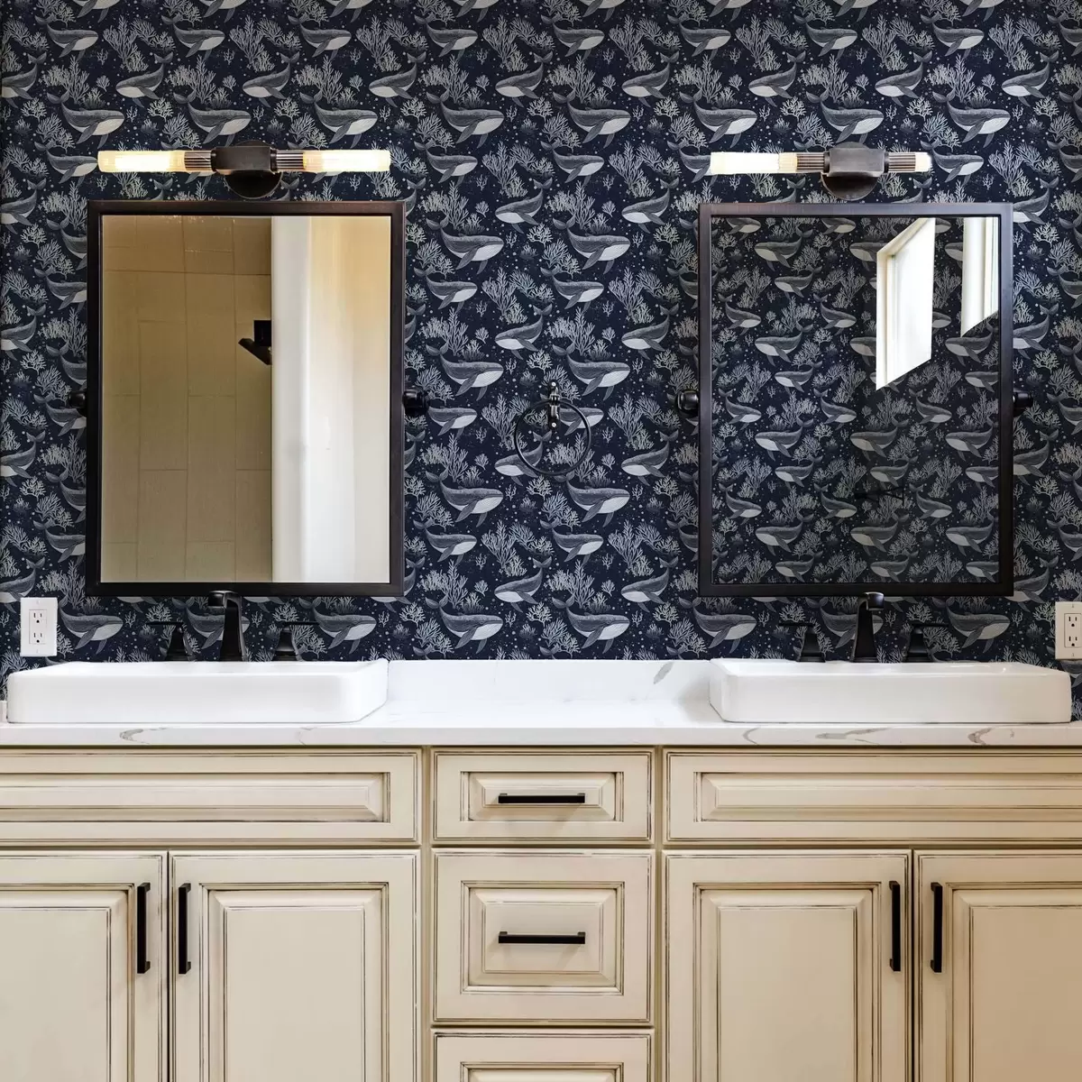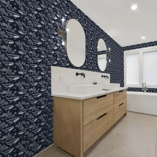 Tapeta Китови и корали на тамно плавој позадини бр. a00116v1