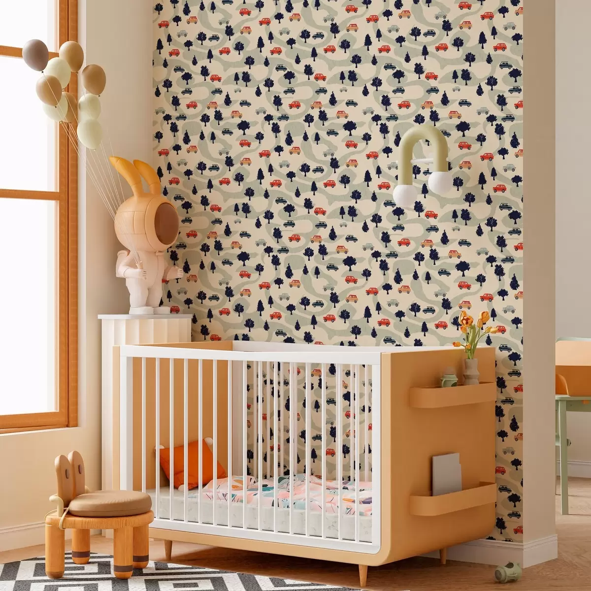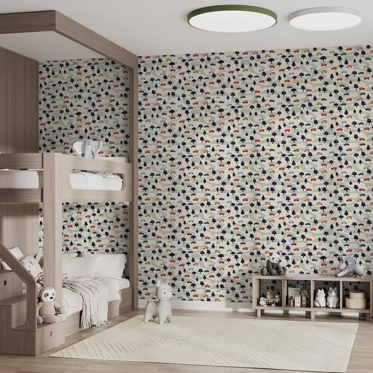 Tapeta Смешни аутомобили међу дрвећем на крем позадини бр. a00119
