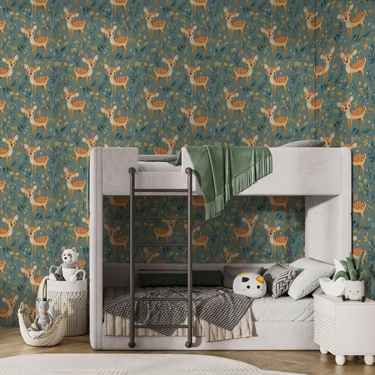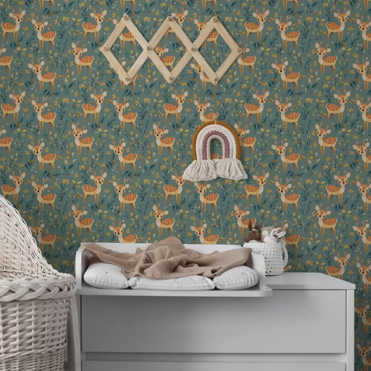 Tapeta Беба јелена у шуми са жутим лишћем бр. a00124v1