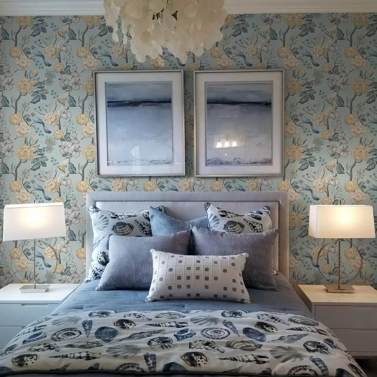 Tapeta Цвеће и птице на плавој позадини бр. a00134