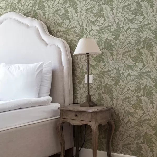 Tapeta Барок са крем лишћем на зеленој позадини бр. a00135