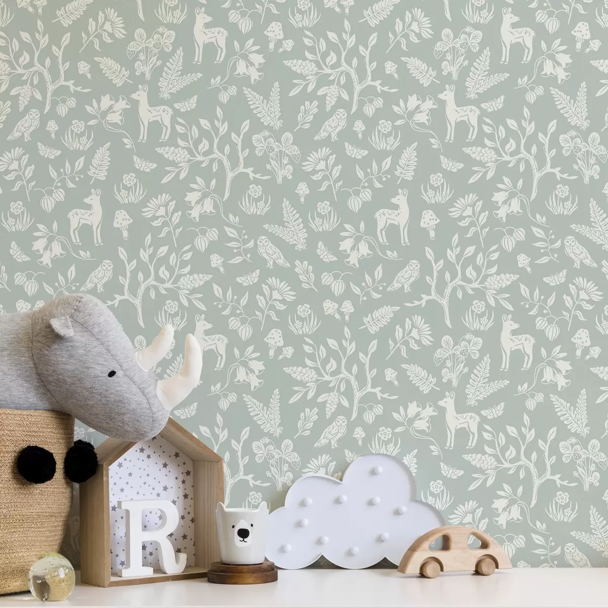 Tapeta Скандинавске животиње и биљке на позадини менте бр. a00149