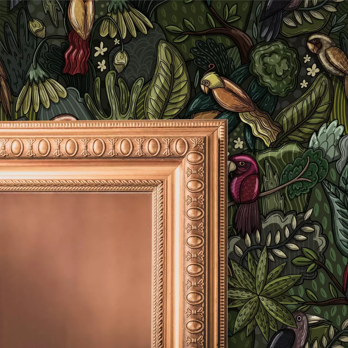 Tapeta Егзотичне птице у џунгли у стилу гравуре бр. a00157