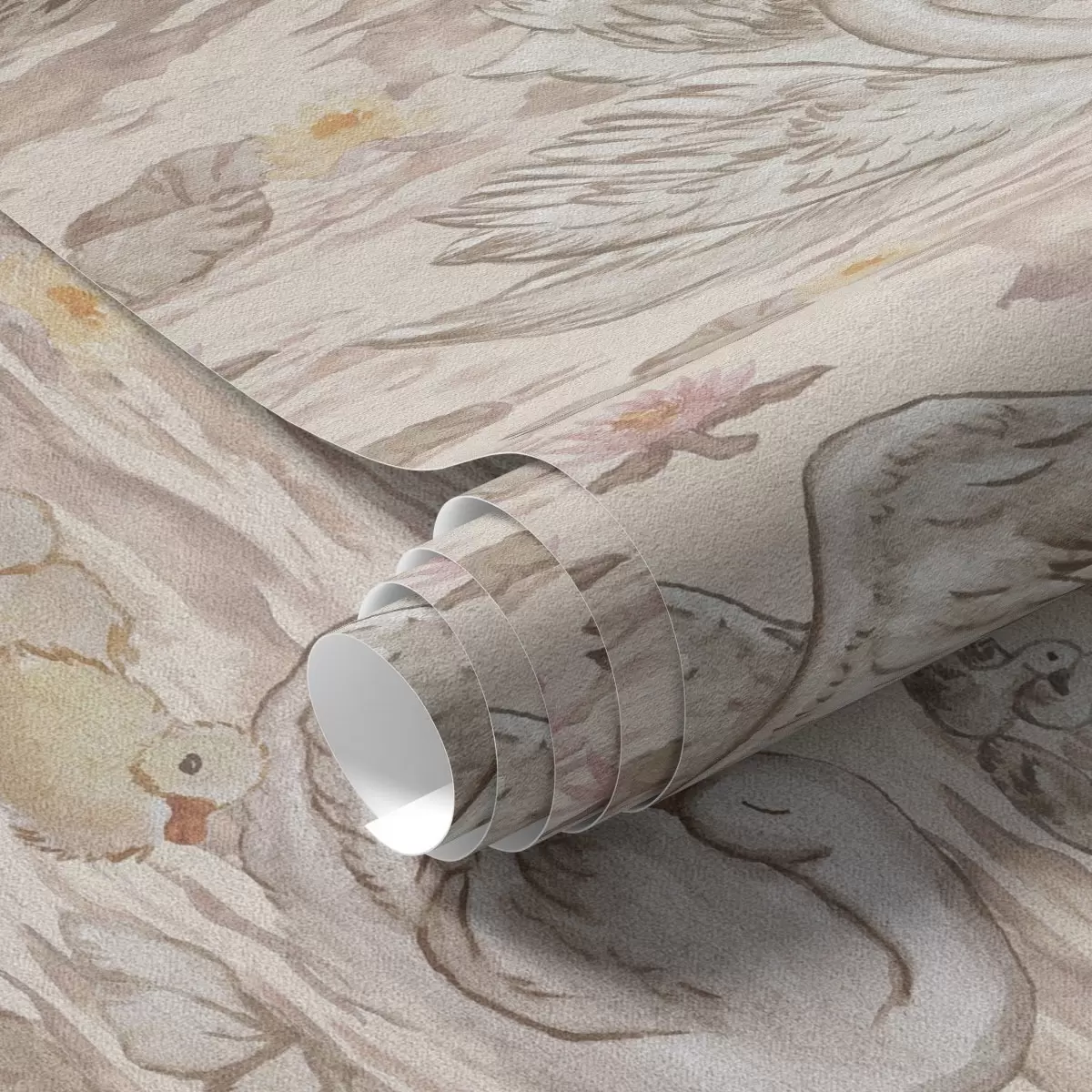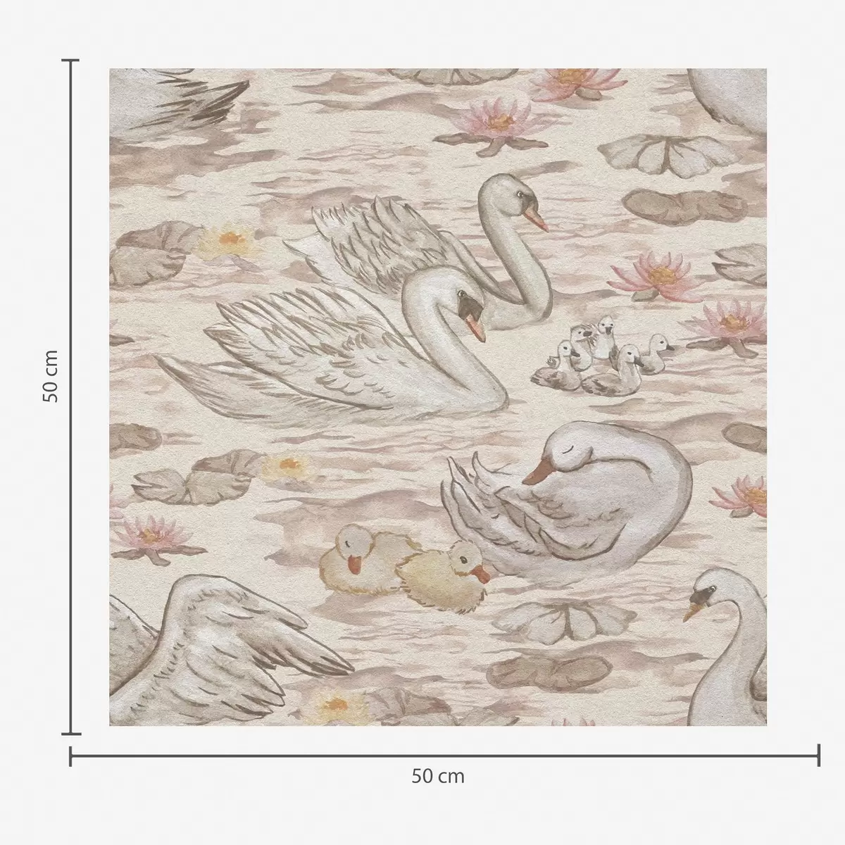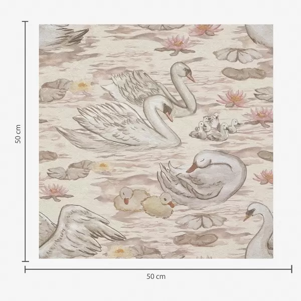 Tapeta Лабудови са пилићима на ружичастој позадини са локвањама бр. a00176