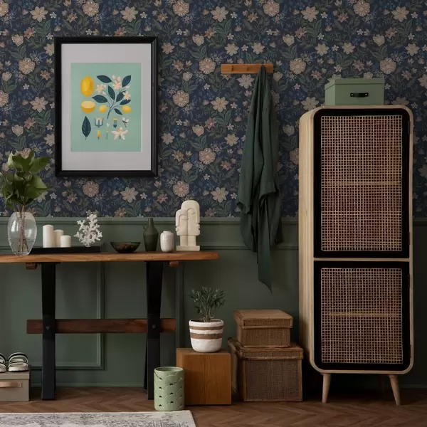 Tapeta Тамноплави цветни узорак у винтаге стилу бр. a00183