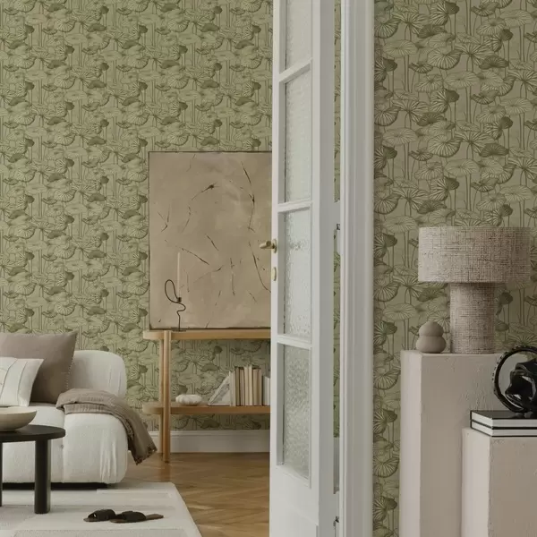 Tapeta Графички лотосови листови у ретро стилу на беж позадини бр. a00188