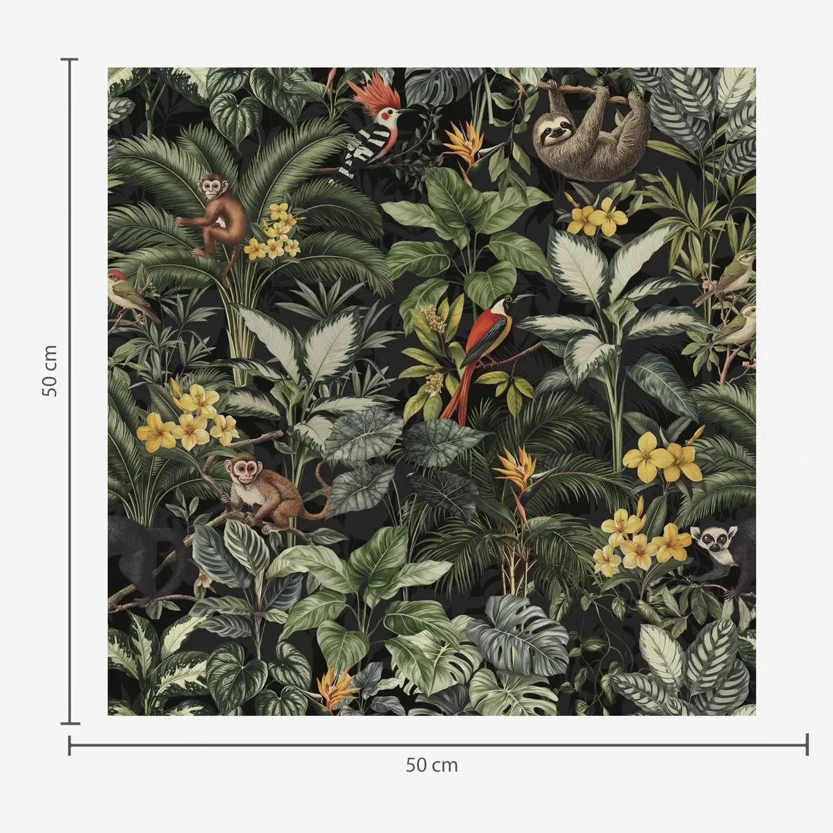Tapeta Тропска џунгла са мајмунима, птицама и густим растињем бр. a00191
