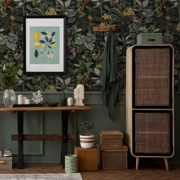 Tapeta Тропска џунгла са мајмунима, птицама и густим растињем бр. a00191
