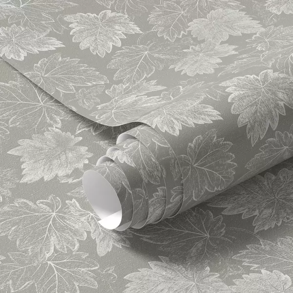 Tapeta Графички јаворов лист у сребрној шеми боја на сивој позадини бр. a00196