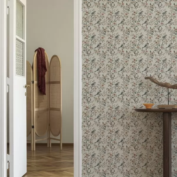 Tapeta Птице на гранама са цвећем у ретро акварел стилу бр. a00197