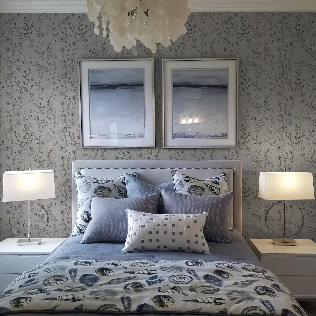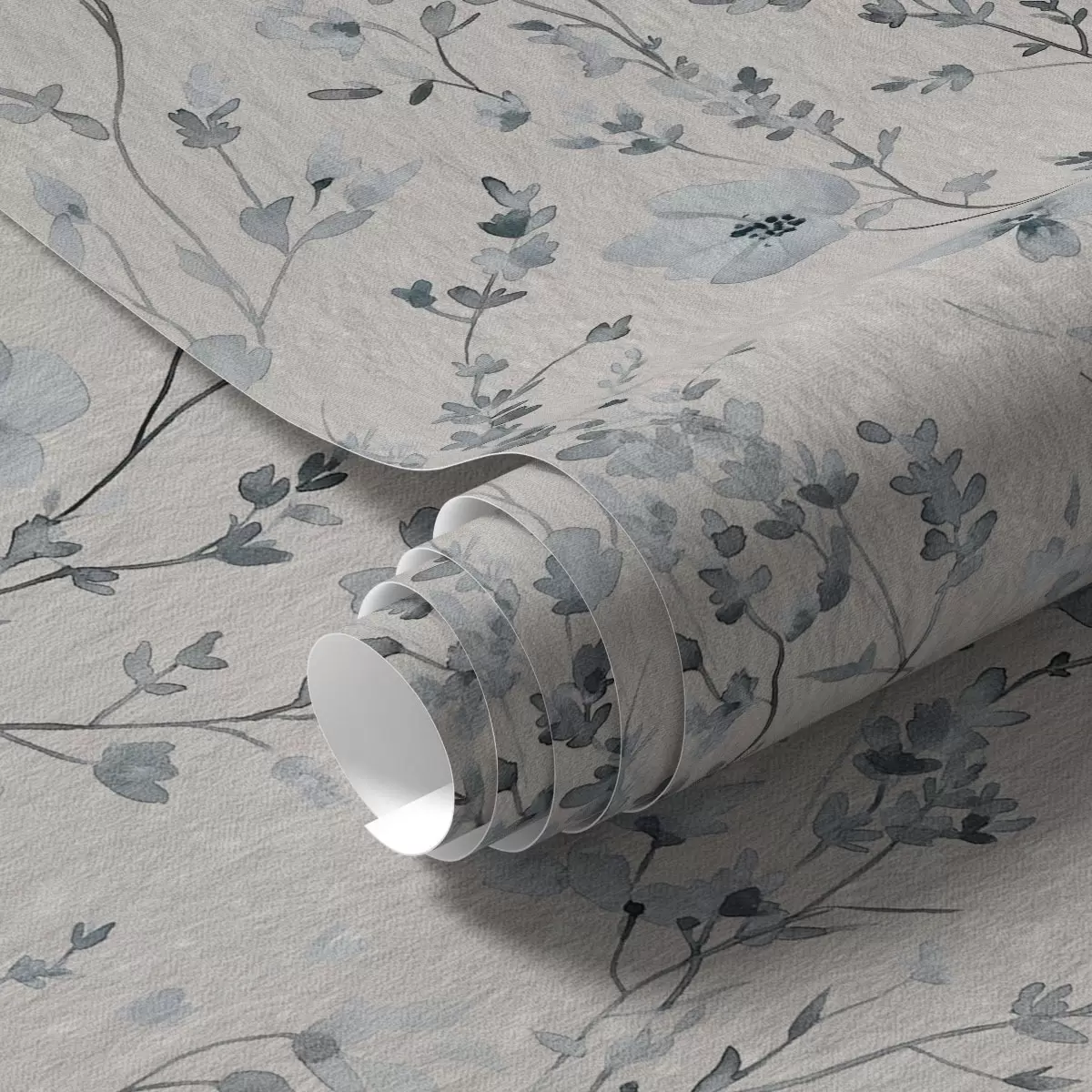Tapeta Плава и сива акварелна флористика на неутралној позадини бр. a00198