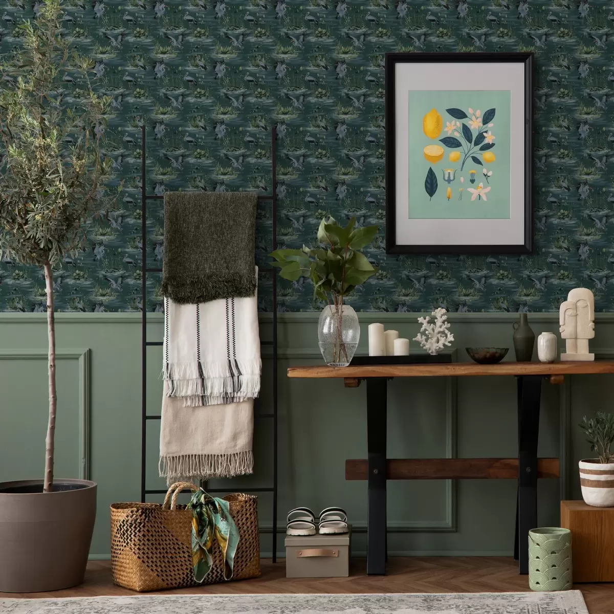 Tapeta Сцене са чапљама на позадини језера и локвања бр. a00202