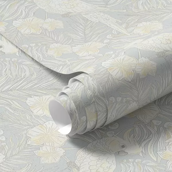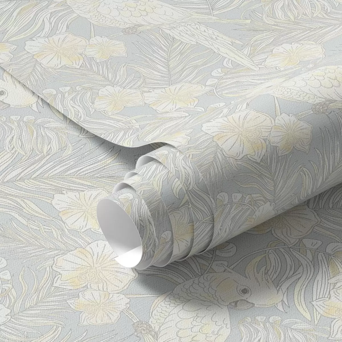 Tapeta Лагани тропски принт са какадуима и цвећем на плавој позадини бр. a00203