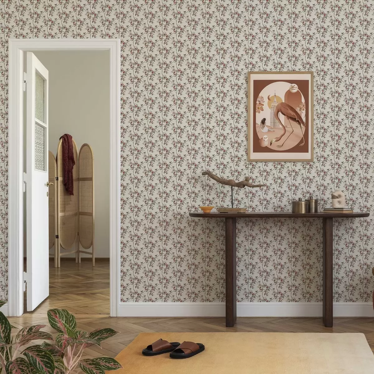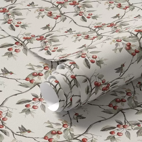 Tapeta Птице међу гранама трешње са црвеним бобицама бр. a00206