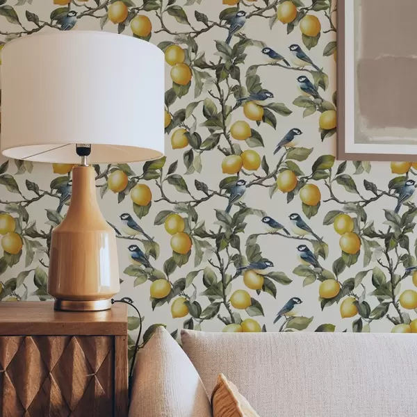 Tapeta Птице и лимуни на гранама, акварелни ботанички цртеж бр. a00207
