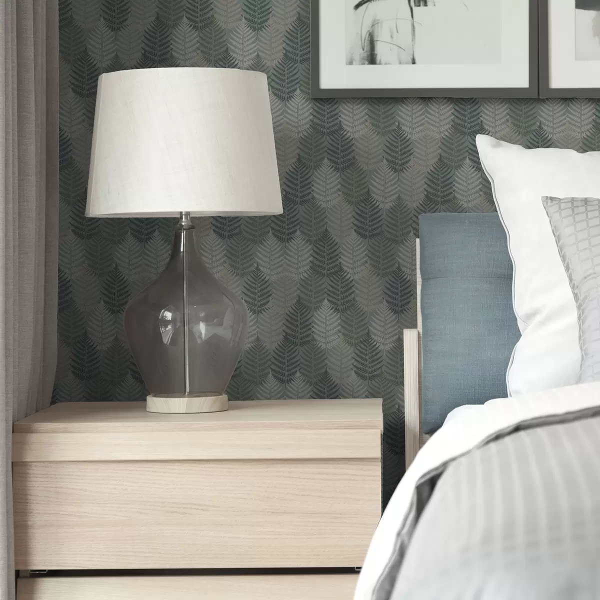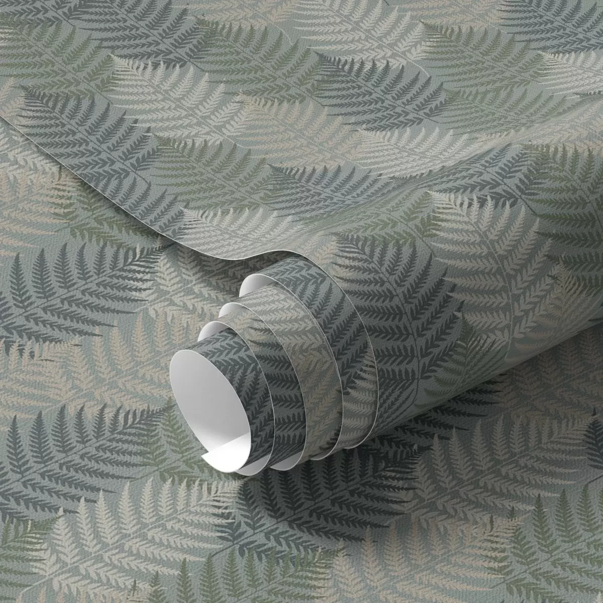 Tapeta Листови папрати, геометријски узорак, зелене и плаве боје бр. a00211