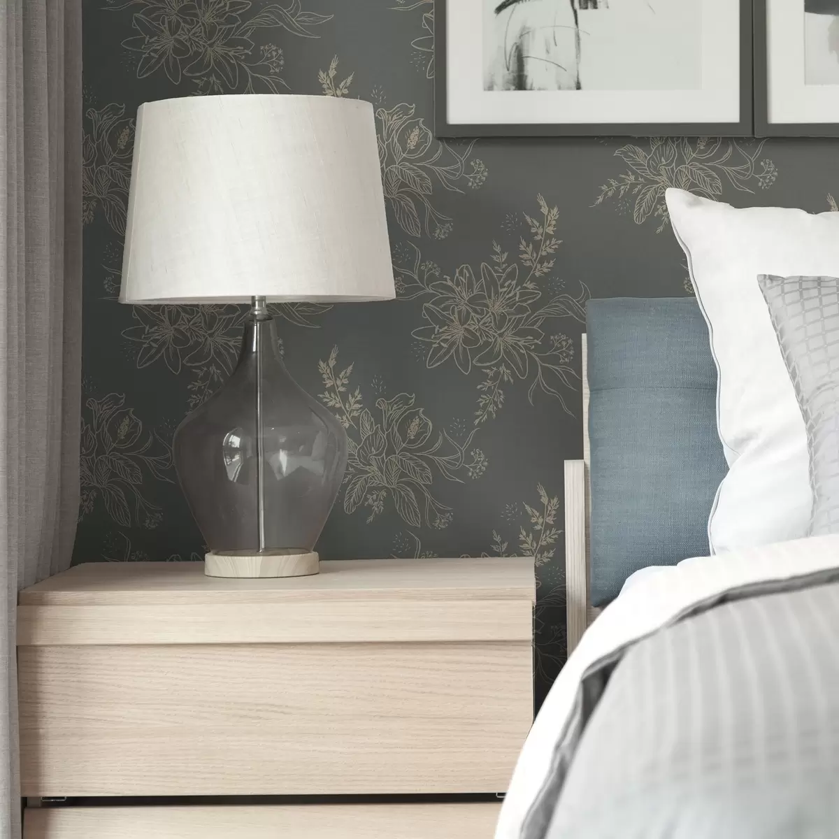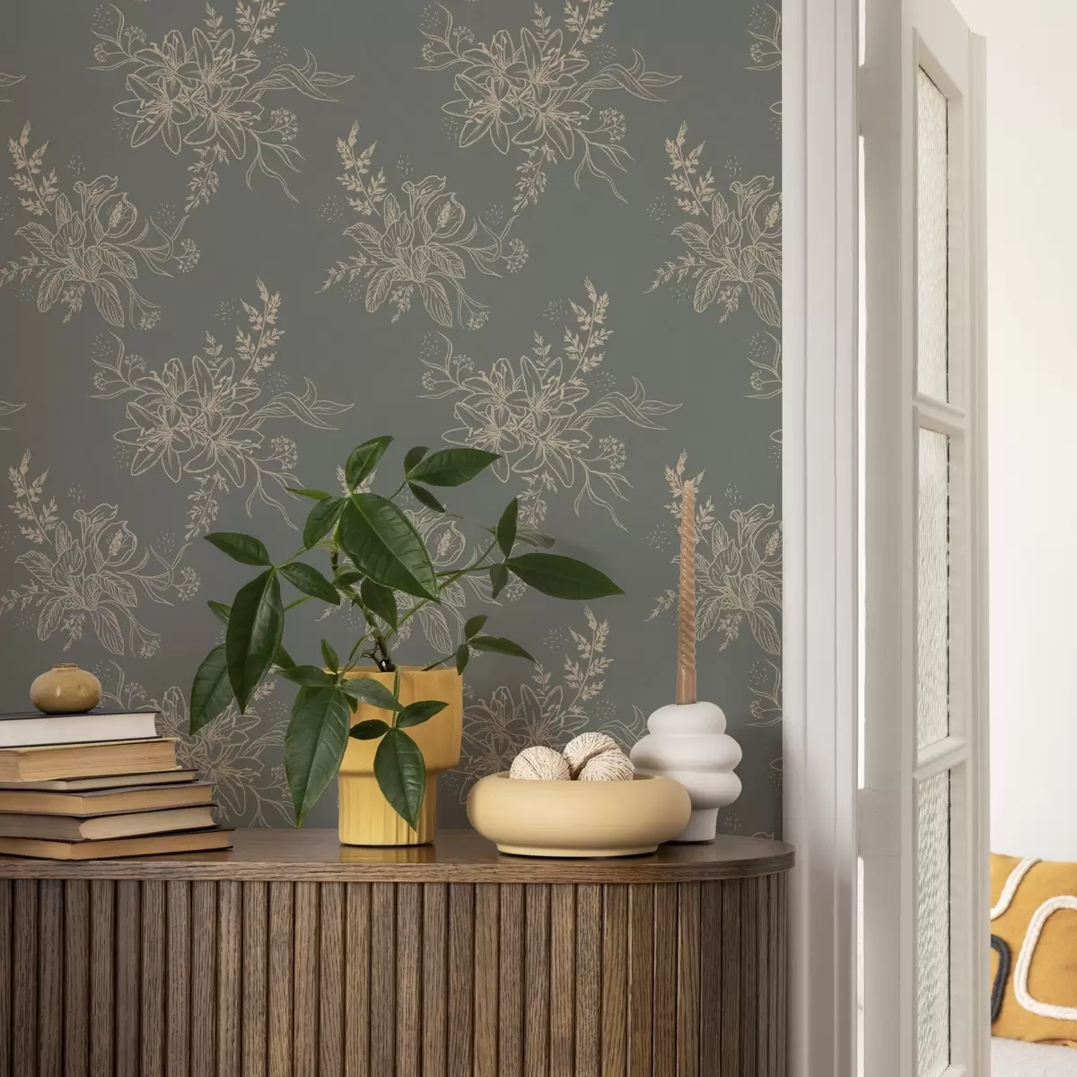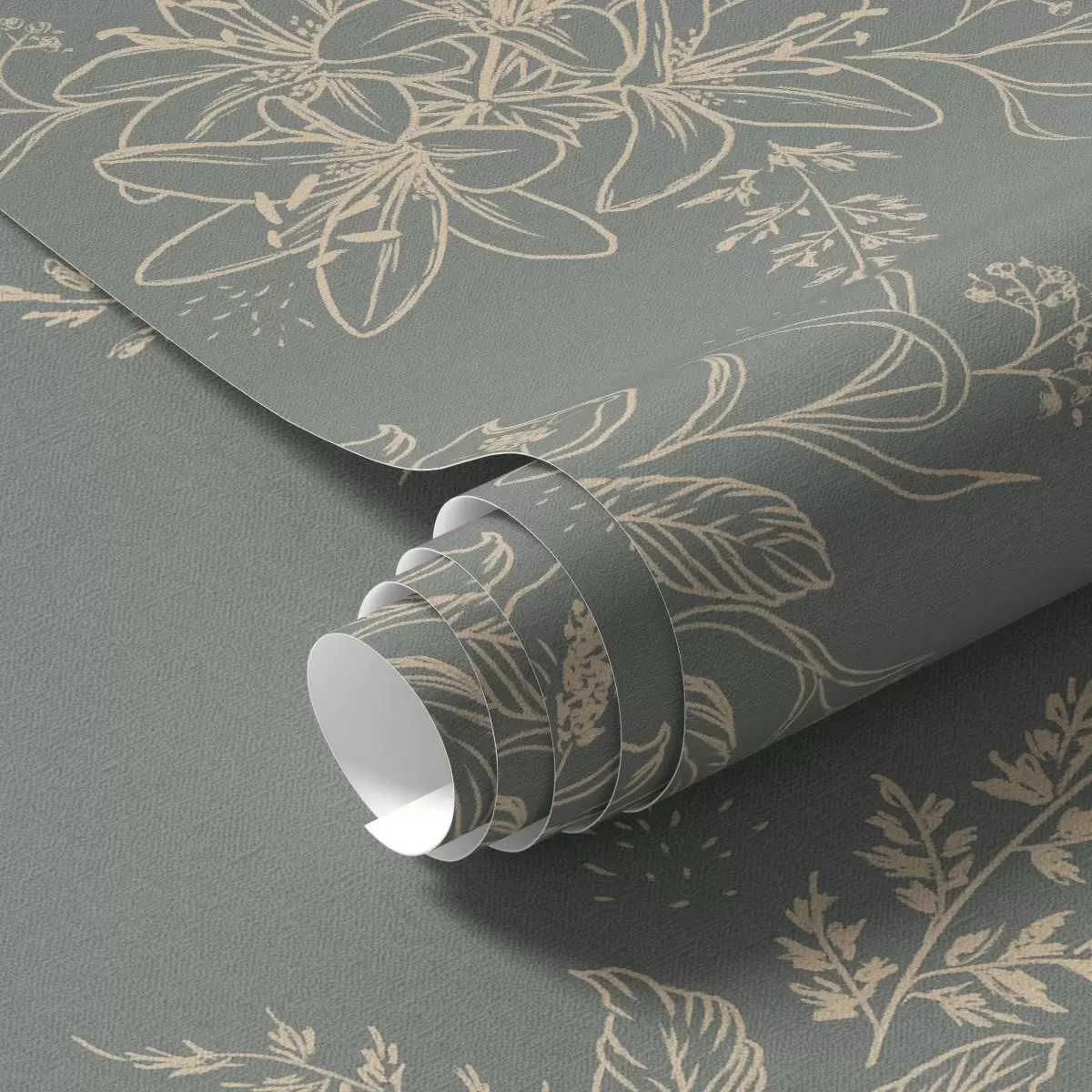 Tapeta Контурно цвеће на плаво-сивој позадини, елегантан ботанички узорак бр. a00226