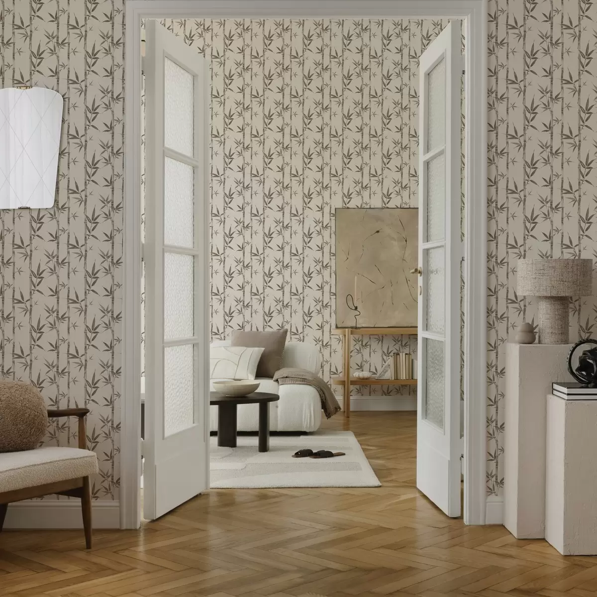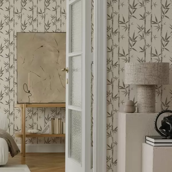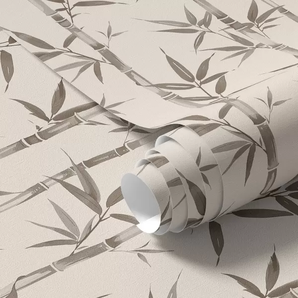 Tapeta Беж бамбусов узорак са листовима у јапанском стилу бр. a00236