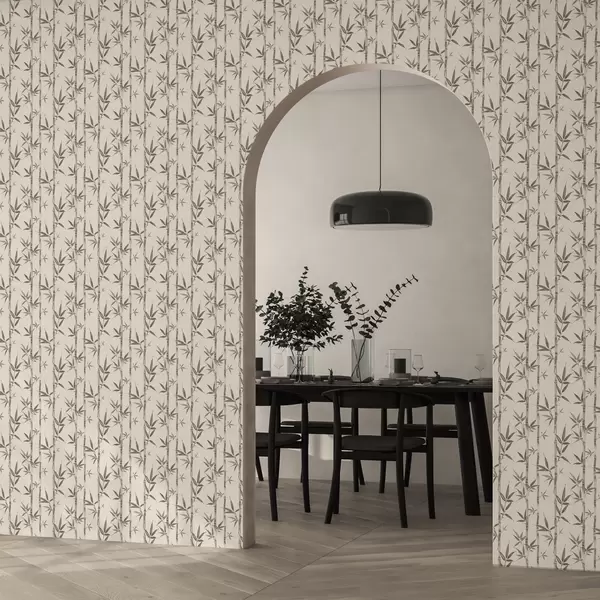 Tapeta Беж бамбусов узорак са листовима у јапанском стилу бр. a00236
