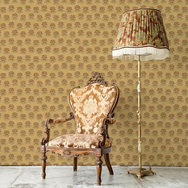 Tapeta Ретро цветни узорак са лотосима на жутој позадини бр. a00238