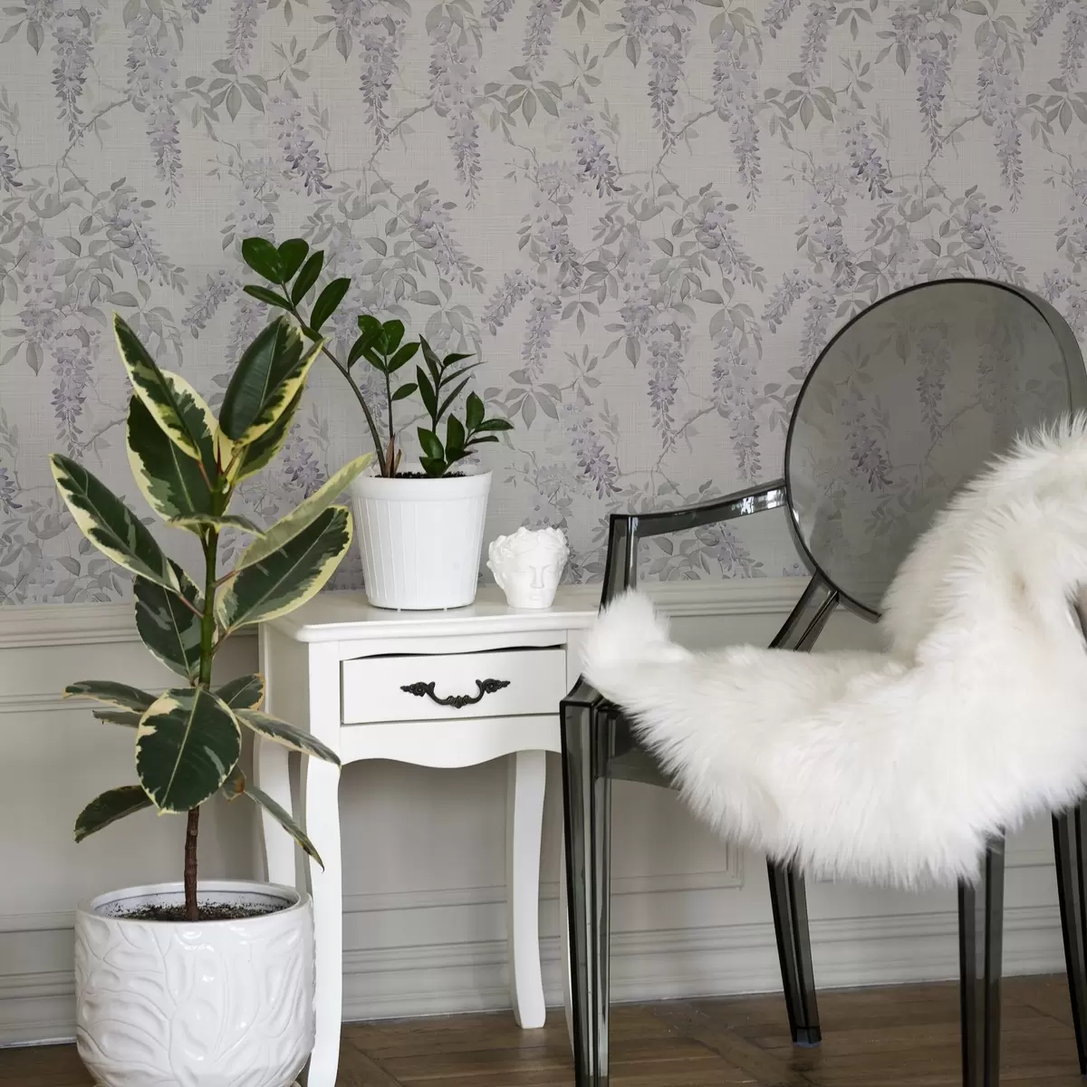 Tapeta Јоргована глицинија на белој позадини, акварел стил бр. a00239