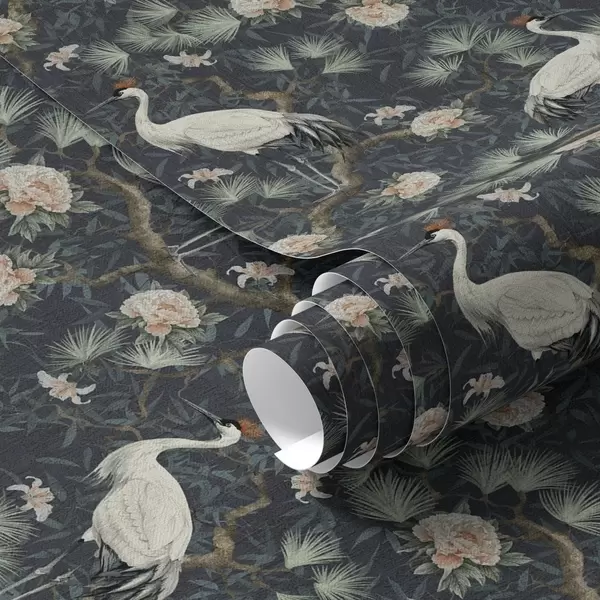 Tapeta Ждралови међу боровима и божурима на тамној позадини бр. a00241