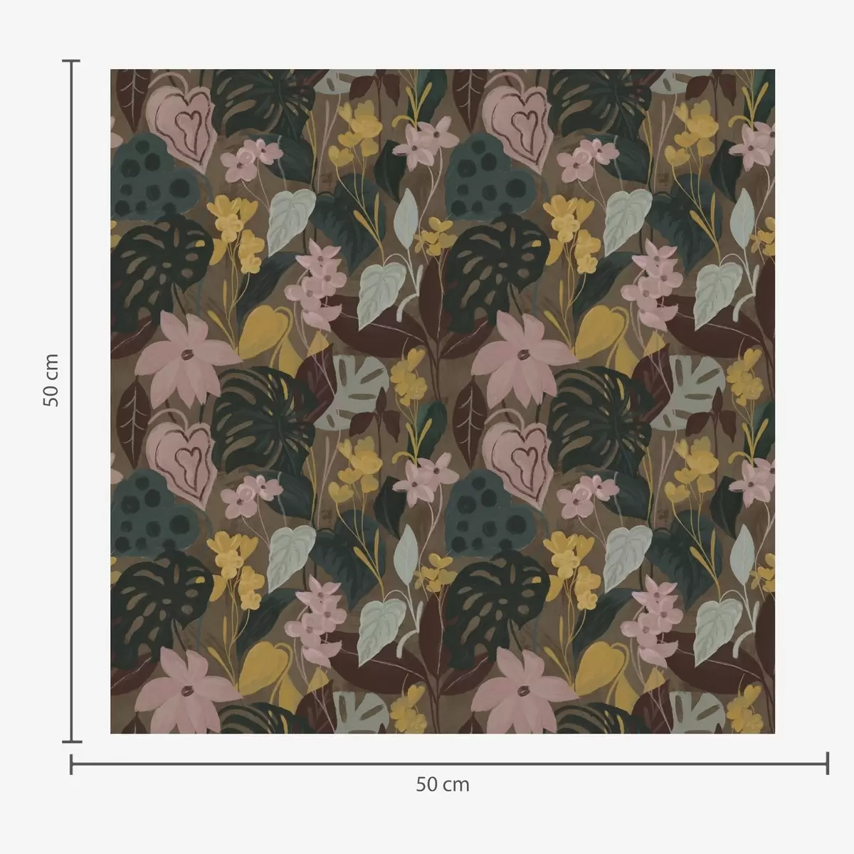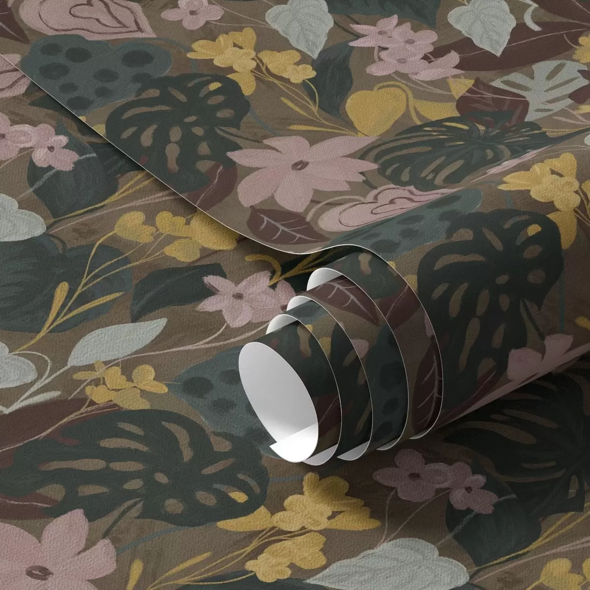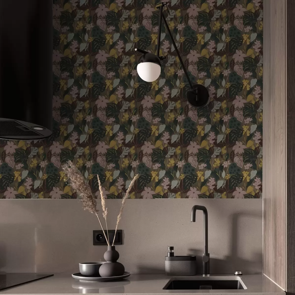 Tapeta Тамно тропско лишће и цвеће у густој слици, густа слика бр. a00244