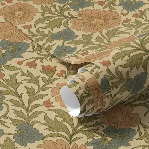 Tapeta Ретро узорак са наранџастим и плавим цвећем бр. a00245
