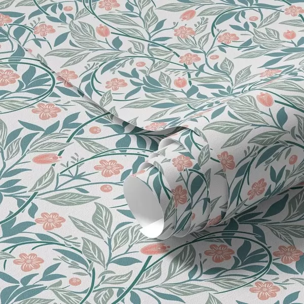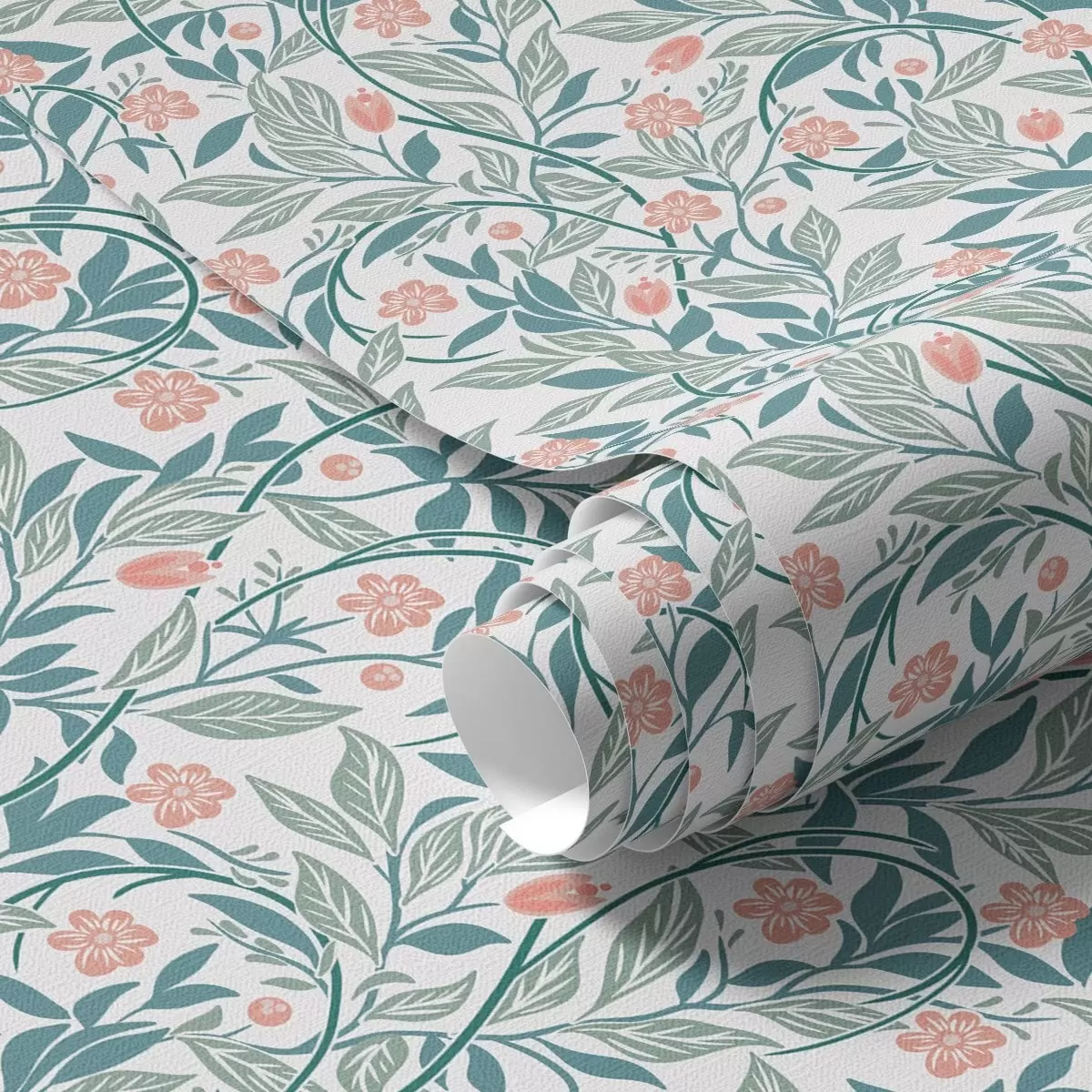 Tapeta Свеж узорак са коралним цветовима и листовима бр. a00247