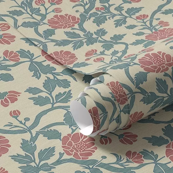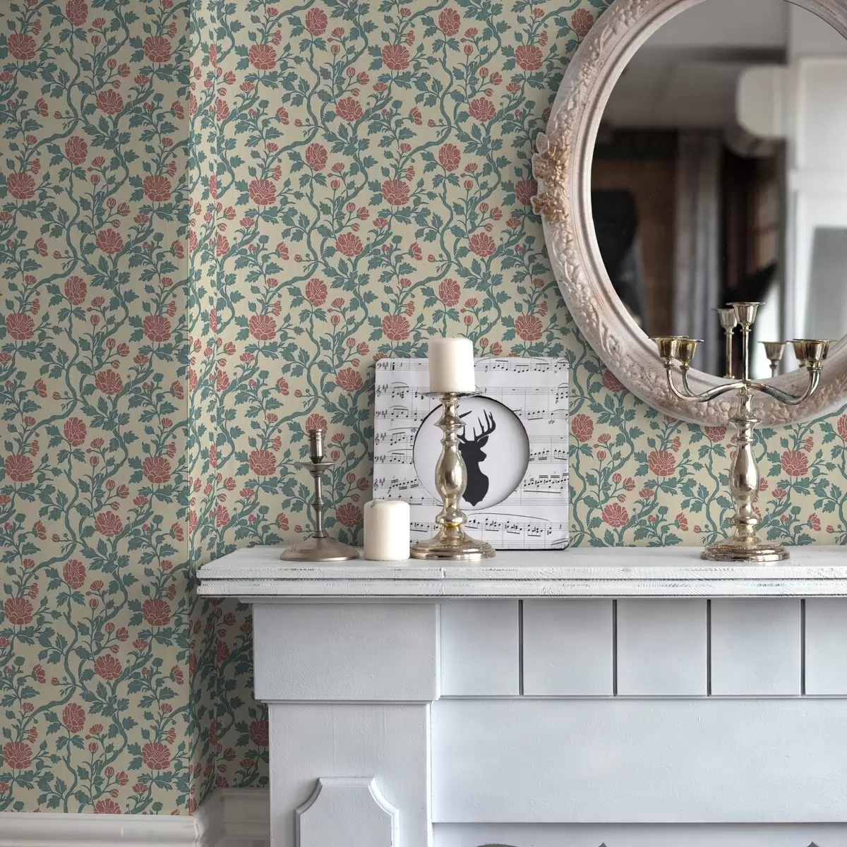 Tapeta Ретро узорак са цвећем у црвеној и зеленој боји бр. a00250