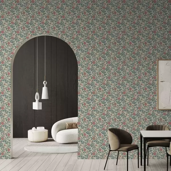 Tapeta Ретро узорак са цвећем у црвеној и зеленој боји бр. a00250