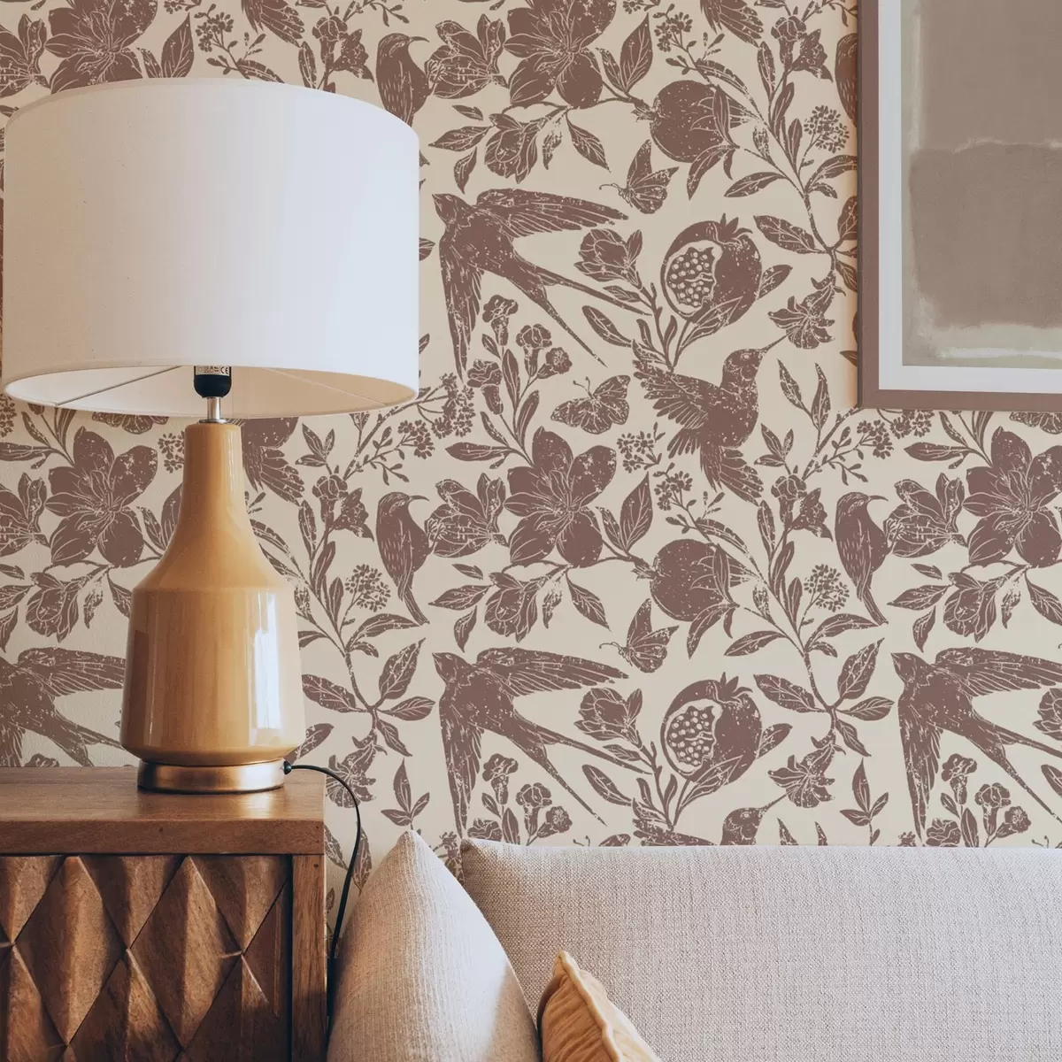 Tapeta Птице, нар и цвеће у винтаге стилу бр. a00263