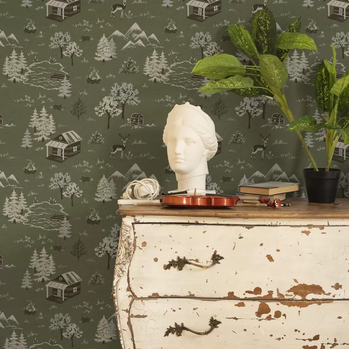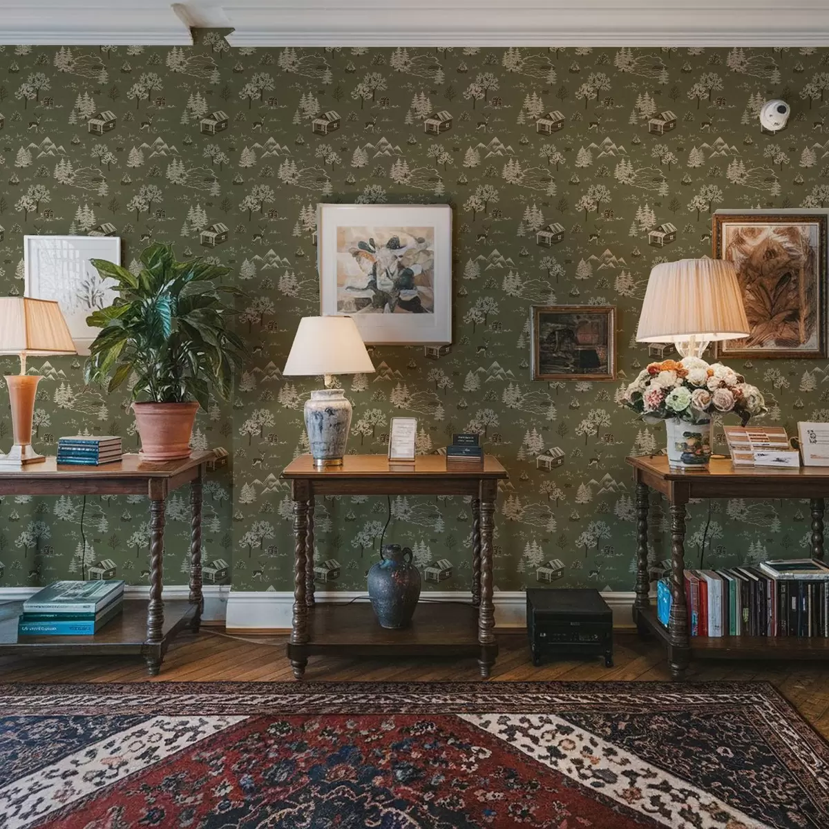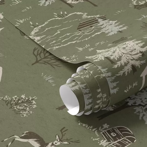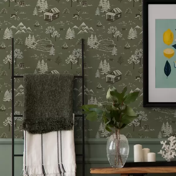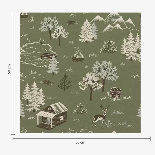 Tapeta Осликана шума са језером, колибом и животињама бр. a00267