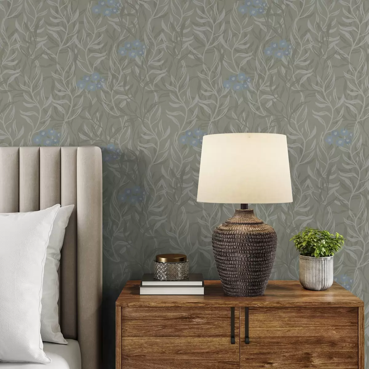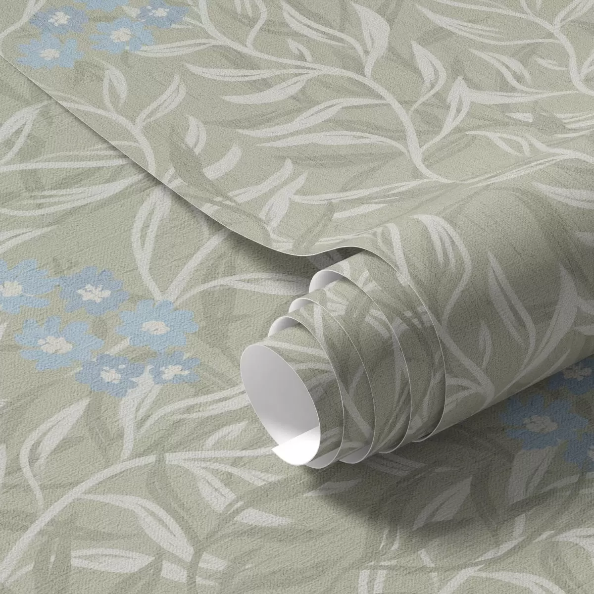 Tapeta Зелена позадина са белим гранама и плавим цвећем бр. a00268v1