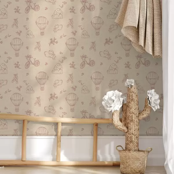 Tapeta Беби ружичасти узорак са псом, цвећем и ваздухом бр. a00279