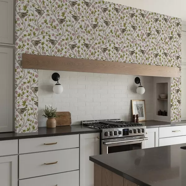 Tapeta Птице на гранама са лишћем и бобицама на белој позадини бр. a00283
